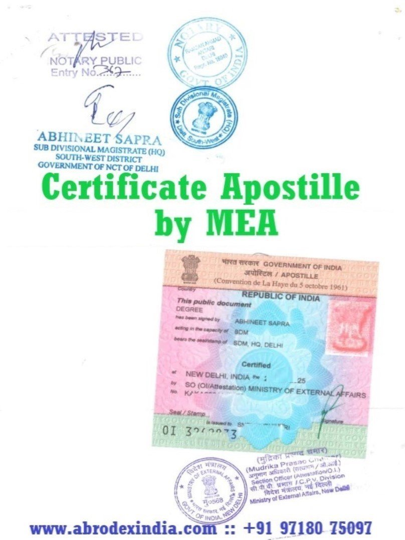 • The Ministry of External Affairs (MEA), Govt. of India, provides the Apostille stamp.